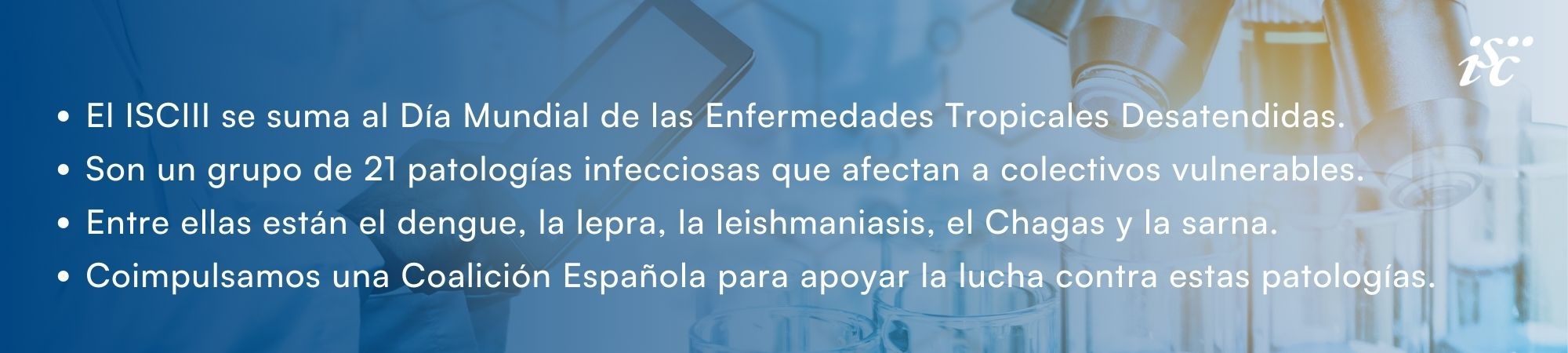 Un año más, el Instituto de Salud Carlos III (ISCIII) se ha hecho eco del Día Mundial de las Enfermedades Tropicales Desatendidas (NTD, por sus siglas en inglés), con la celebración de una jornada científica y divulgativa, que ha tenido lugar en el Salón Ernest Lluch del Campus de Chamartín del Instituto, en Madrid. El encuentro ha sido inaugurado por la directora del ISCIII, Marina Pollán, y presentado por los investigadores Isra Cruz, de la Escuela Nacional de Sanidad, y María Romay-Barja, del Centro Nacional de Epidemiología. La sesión, que se ha podido seguir en setraming, puede verse completa desde el Canal de Youtube del Instituto.