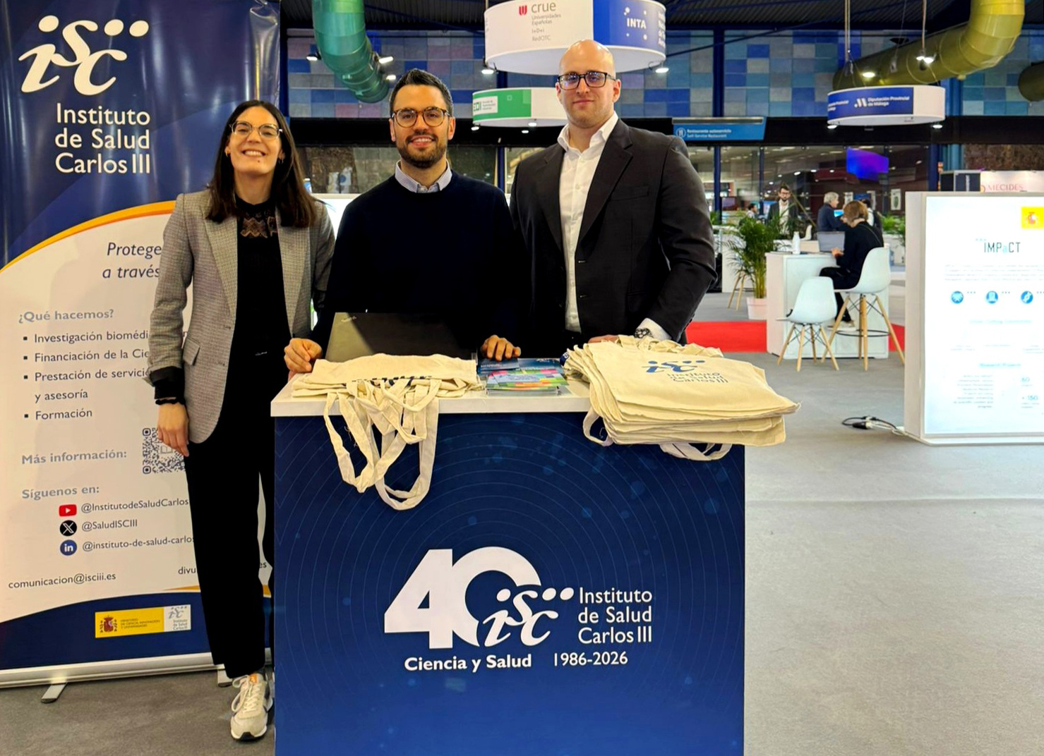 En esta XV edición de Transfiere, el ISCIII ha consolidado y ha seguido impulsando su creciente presencia en el Foro, contando con una amplia representación institucional y de todo su ecosistema de innovación, bajo el liderazgo de la Dirección General y de la Subdirección General de programas Internacionales de Investigación y Relaciones Institucionales. El equipo del ISCIII en Transfiere ha estado liderado por nuestra directora general, Marina Pollán, y nuestros subdirectores generales Daniel Ruiz Iruela (Programas Internacionales de Investigación) y María José Buitrago (Terapia Celular).