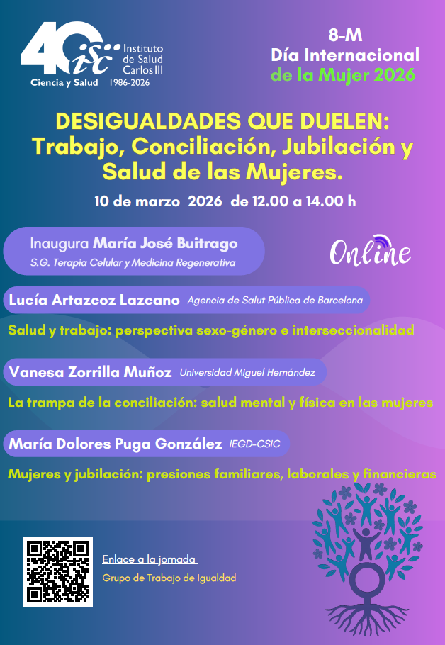 • (10/03/2026) Acto conmemorativo por el Día Internacional de la Mujer: “Desigualdades que duelen: Trabajo, Conciliación, Jubilación y Salud de las Mujeres”. Enlace a la Grabación de la Jornada