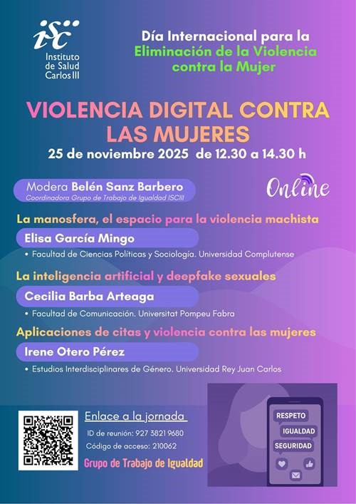 - (25/11/2025) Acto conmemorativo por el Día Internacional para la Eliminación de la Violencia contra la Mujer: Violencia digital contra las mujeres. Programa de la Jornada y enlace a la Grabación de la Jornada.